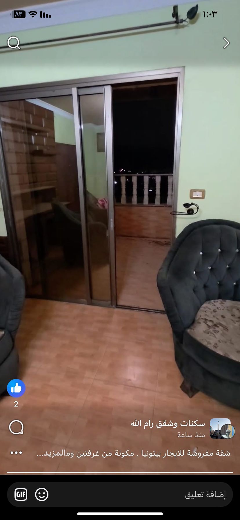 شقة مفروشة غرفتين ومنافعها بسعر ١٥٠٠ شيكل